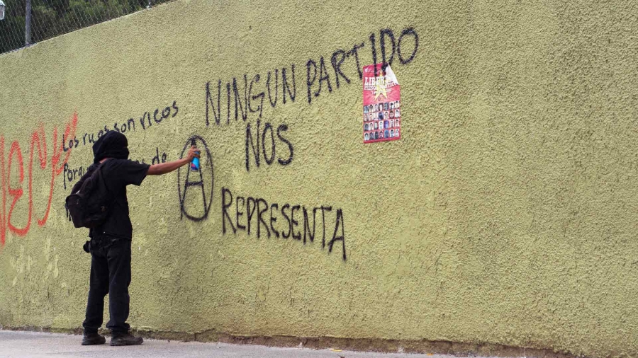 ● FR/ Topes entremêle les manifestations du printemps 2016 à Mexico City (D.F). Ces protestations ont émergé en réponse à la politique de l'ancien gouvernement d'Enrique Peña Nieto, deux ans après le scandale de l'affaire, 43 étudiants ont disparu suite à des affrontements avec la police dans l’État de Guerrero au soir du 26 septembre 2014.